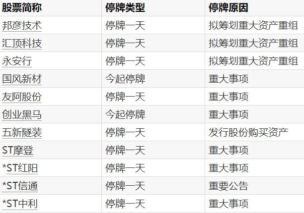 【A股停牌提示:11股今日停牌】 Win