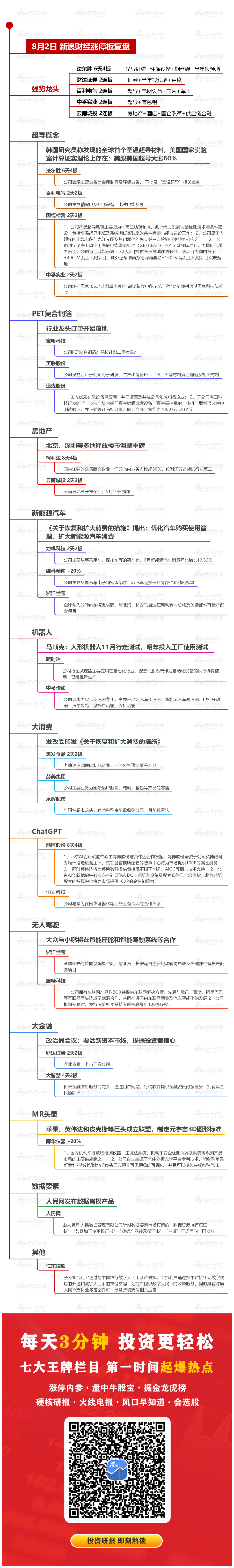 【8月2日沪深两市涨停分析】沪指震荡调整跌0.89%,超导、复合集流体概念走强。超导概念股法尔胜录得6天4板,财达证券、百利电气、中孚实业等2连板,一图看懂>>